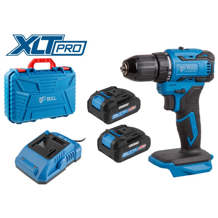 Аккум. дрель-шуруповерт BULL SR 1804 в чем. XLTpro БЕСЩЕТ., Импульс., 18 В, 45 Н*м, 2х2 А*ч, з/у 2 А