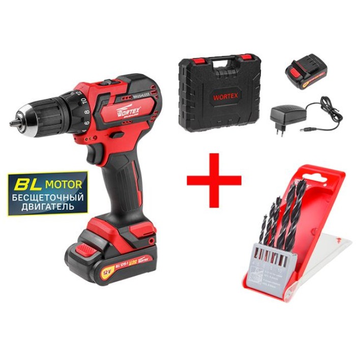 Аккум. дрель-шуруповерт WORTEX BD 1215-1 DLi в чем. + АКЦИЯ! набор сверл Wortex в подарок!