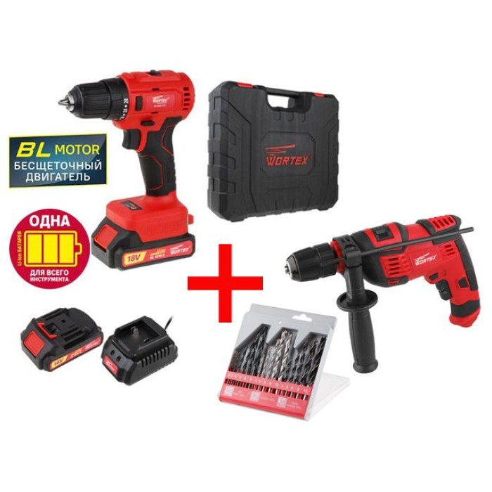 Аккум. дрель-шуруповерт WORTEX BD 2025-1 DLi в чем. ALL1 + АКЦИЯ!(дрель со скидкой + 16 шт. сверл)
