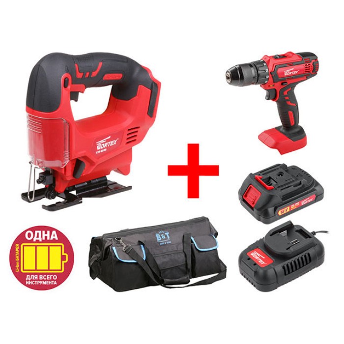 Аккум. лобзик WORTEX CJS 6529 в кор. ALL1 + АКЦИЯ (комплект с шуруповерт, акб, зу и сумка со скидой)