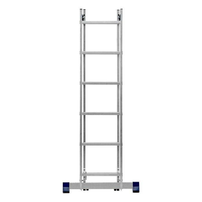 Лестница-помост 3 в 1 97970 необходима для проведения малярных и штукатурных работ на высоте нескольких метров. Площадка выдерживает нагрузку 150 кг, поэтому на ней может расположиться мастер с необходимыми инструментами. Помост трансформируется в двустороннюю стремянку и раздвижную приставную лестницу, что расширяет возможности его использования.ПреимуществаПрочность и долговечность — лестница изготовлена из алюминиевого профиля.Устойчивость — благодаря поперечным траверсам подмости стоят ровно.Надежная конструкция — ступеньки прочно соединены с опорами за счет многократной развальцовки, выдвижная секция крепко удерживается алюминиевыми кронштейнами.Удобная работа на лестничных пролетах — площадку можно устанавливать на разных уровнях опор.Безопасность пользователя — рифленая поверхность ступенек препятствует скольжению, благодаря пластиковым заглушкам лестница не скользит, а о края опор нельзя пораниться или повредить одежду.Удобная транспортировка — лестницу-помост легко перемещать благодаря небольшому весу 11,6 кг и двум колесам.Компактность — в сложенном виде лестница занимает мало места.