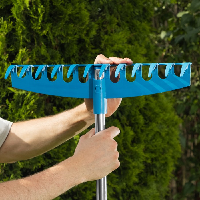 Алюминиевый черенок Palisad Luxe 61792 длиной 1580 мм, с фиксатором, совместим с граблями 61733, 61732, 61793. Во время работы нагрузка на позвоночник минимальна: комфортная длина черенка позволяет не нагибаться, а его вес составляет 450 г. Подпружиненный фиксатор надежно удерживает насадку-грабли. Изделие пригодится для уборки газонов и грядок.ПреимуществаДолговечность — труба из анодированного алюминия обладает высокой прочностью, устойчива к коррозии и воздействию ультрафиолета.Комфортная работа — благодаря дополнительной накладке из ПВХ черенок удобно держать в руках.Удобное хранение — петля из ПВХ служит для подвешивания инвентаря на крючок или гвоздь.