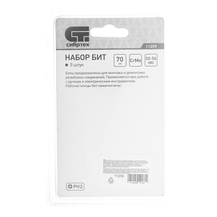 Бита PH2 x 70, сталь CrMo, 5 шт. Сибртех