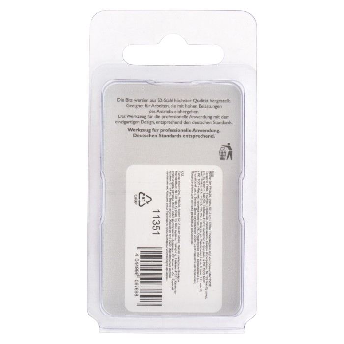 Набор бит Gross 11351 состоит из 2 наиболее востребованных крестообразных насадок типа PH2 длиной 25 мм, с хвостовиком 1/4 дюйма, изготовленных из стали S2 и предназначенных для использования с шуруповертами и отвертками-адаптерами. За счет оптимальной геометрии и высокой точности исполнения шлица биты не проскальзывают в головках крепежа. Оснастки используются для монтажа и демонтажа саморезов по дереву, шурупов и других резьбовых крепежей.ПреимуществаИзносостойкость и долговечность — биты изготовлены из японской легированной стали S2 твердостью 54-58 HRC, поэтому долго сохраняют рабочие свойства.Намагниченный шлиц — можно направлять шуруповерт с насаженным крепежом одной рукой, а другой придерживать закрепляемую деталь.Коррозионная стойкость — никелированная поверхность устойчива к появлению ржавчины.Защита от подделок — на каждой бите имеется цветное кольцо с логотипом ТМ Gross.Удобная упаковка — оснастка поставляется в жестком блистере с европодвесом.Высокое качество исполнения — насадки произведены на Тайване под строгим технологическим контролем.