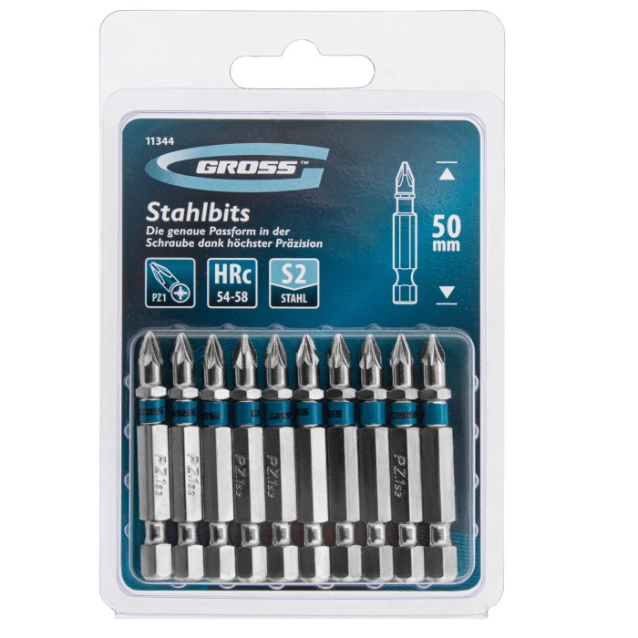 Бита РZ1 х 50, сталь S2, 10 шт. Gross