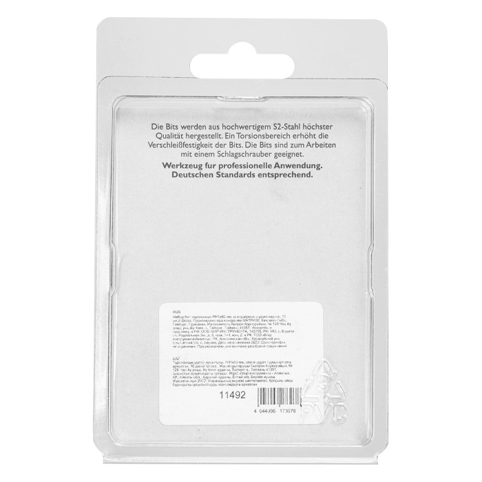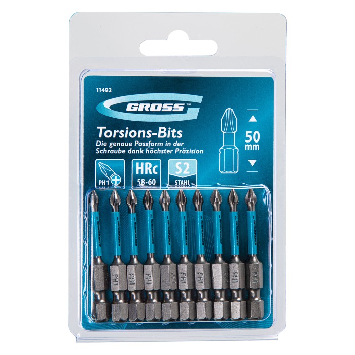 Набор торсионных бит PH1 x 50 мм Gross 11492, 10 шт., предназначен для монтажа и демонтажа резьбовых соединений с помощью ударного шуруповерта. Он незаменим в строительных, слесарных и монтажных работах, в автосервисах, при проведении ремонта в доме. Торсионная зона способна пружинить, за счет чего она частично амортизирует тангенциальный удар от шуруповерта. Такое решение позволяет равномерно распределить нагрузку по бите и избежать поломки шлица.ПреимуществаПродуманная конструкция — торсионная зона позволяет работать ударным шуруповертом даже с особо твердыми поверхностями без риска поломки бит.Высококачественный материал изготовления — японская легированная сталь S2 обеспечивает устойчивость бит к износу и увеличивает их ресурс.Износостойкость — биты закалены до твердости 58-60 HRC, что повышает сопротивляемость к деформации.Надежная фиксация насадок — шлицы бит намагничены, поэтому крепеж не выпадет, а мастер сможет свободной рукой придерживать закрепляемый материал.Защита от подделок — синее кольцо с логотипом ТМ Gross подтверждает оригинальность товара.Удобное хранение — насадки поставляются в блистере с европодвесом, который можно вешать на стенд.10 бит в комплекте — набора хватит на небольшую производственную бригаду.