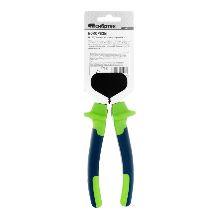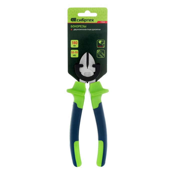 Бокорезы Сибртех 17523 длиной 180 мм, с двухкомпонентными рукоятками, используются для перерезания проволоки, стержней, пластиковых прутков и других материалов. Пригодятся для слесарных и монтажных работ на строительной площадке, в мастерской, а также дома и в гараже.ПреимуществаПрочность и износостойкость — рабочие части из выполнены легированной стали 45, прошли индукционную закалку и шлифовку.Безопасная работа — благодаря широким ограничительным выступам на рукоятках пальцы не соскальзывают к рабочим частям.Эргономичность — двухкомпонентные рукоятки из ПВХ обеспечивают надежный хват и снижают нагрузку на руки.