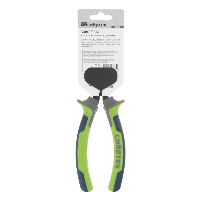 Фосфатированные бокорезы Сибртех 17531 длиной 200 мм, с трехкомпонентными рукоятками, применяются для перекусывания проводов, проволоки и стержней, резки металлических и пластмассовых деталей. Будут полезны при проведении монтажных и слесарных работ дома, в гараже, а также в мастерской и на строительной площадке.ПреимуществаПрочность и высокий ресурс — бокорезы выполнены из кованой и закаленной в масле стали 45, губки частично отшлифованы.Защита от коррозии — фосфатированные рабочие части устойчивы к воздействию влаги.Безопасная работа — широкие упоры препятствуют соскальзыванию руки к рабочим частям.Эргономичность — трехкомпонентные рукоятки с антискользящим покрытием обеспечивают надежный хват.