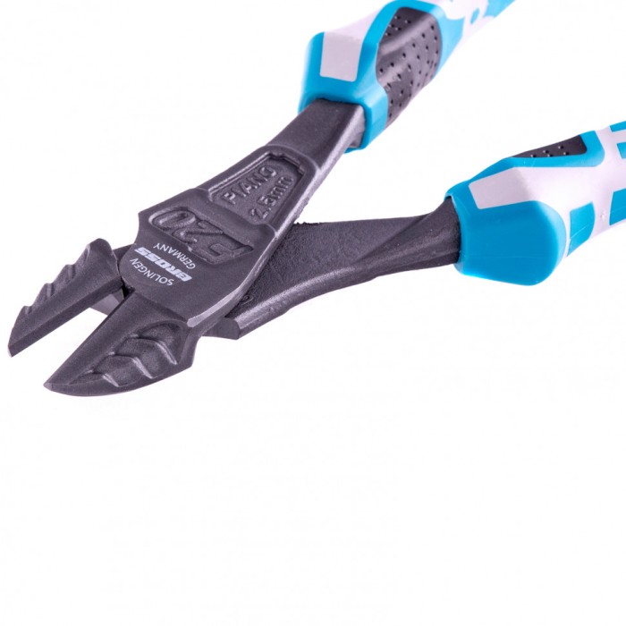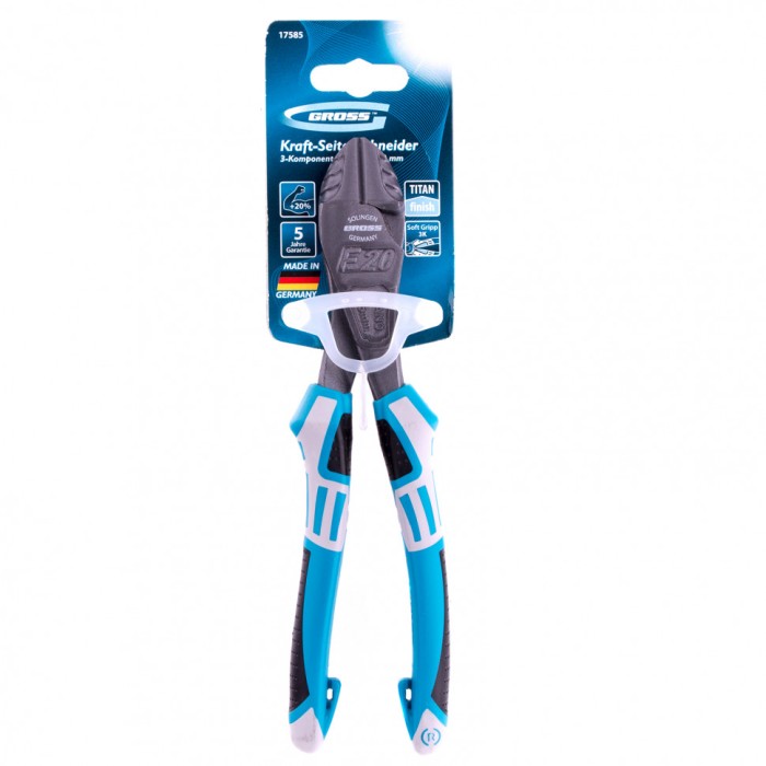 Усиленные бокорезы Gross 17585 длиной 200 мм, с трехкомпонентными рукоятками, предназначены для разрезания кабелей, проводов, проволоки, рояльных струн и т.д. Способны перекусывать не только алюминий, медь, пластмассу, но и более жесткие детали из стали диаметром до 4 мм. Встроенный рычажный механизм и смещенный непосредственно к режущим кромкам шарнир увеличивают усилие реза на 20%.ПреимуществаУстойчивость к интенсивным нагрузкам — губки выполнены из закаленной стали 60 твердостью 45 HRC, шарнирный механизм отличается прочностью.Эффективность — режущие кромки легко справляются с жесткой проволокой за счет дополнительной закалки до твердости 61-63 HRC.Прочность — внешние ребра жесткости увеличивают деформационную стойкость рабочих частей.Защита от коррозии — на металлические части нанесено специальное покрытие Titan Finish.Эргономичность — трехкомпонентные рукоятки с резиновыми вставками не выскальзывают из ладони и уменьшают нагрузку на руку мастера.Дополнительный функционал — на рукоятках имеются упоры для пружины авторазжима или скобы (в комплект не входят).Высокое качество — бокорезы изготовлены в Германии под строгим технологическим контролем, гарантия на заводской брак действует 5 лет.