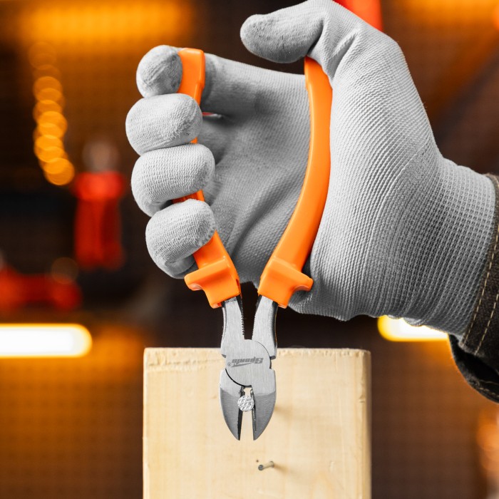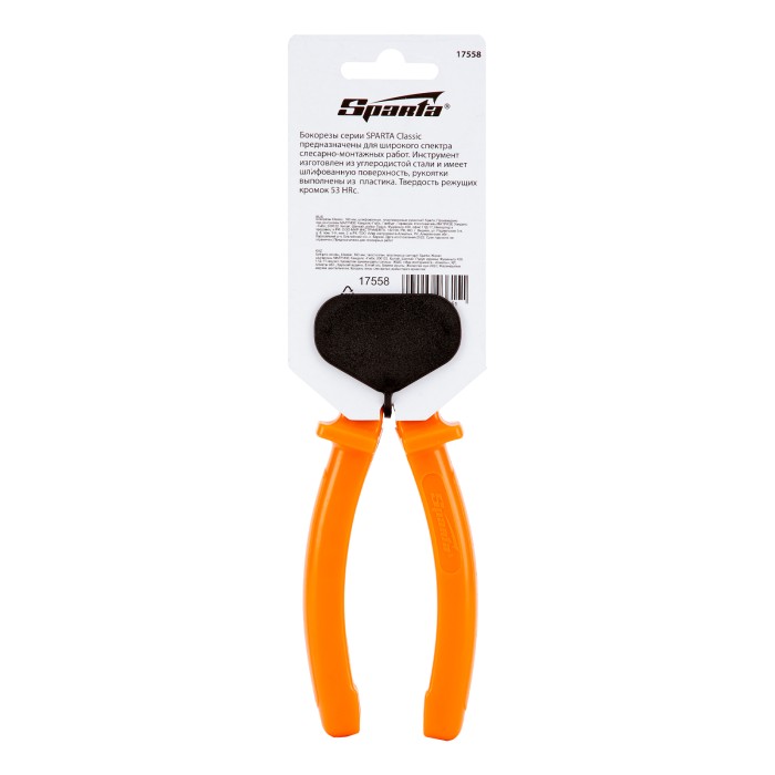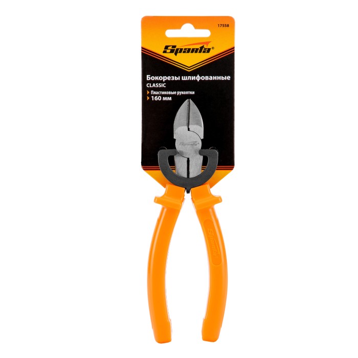 Шлифованные бокорезы Sparta Classic 17558 длиной 160 мм, с пластмассовыми рукоятками, для проведения слесарно-монтажных работ. Успешно справляются с перекусыванием проволоки, алюминиевых и медных проводов, а также снятием изоляции с кабельных изделий. Инструмент пригодится не только в домашнем хозяйстве, но и на строительной площадке.ПреимуществаПрочность и износостойкость — бокорезы выполнены из углеродистой стали марки У7, закаленной до твердости 45,5 HRC.Быстрая и аккуратная работа без риска поломки— режущие кромки дополнительно закалены до твердости 53 HRC.Высокое качество реза — рабочая поверхность отшлифована, что обеспечивает плотное прилегание губок.Комфортная и безопасная работа — пластиковые рукоятки удобно лежат в руке, специальный выступы предотвращают соскальзывание пальцев на рабочую часть.