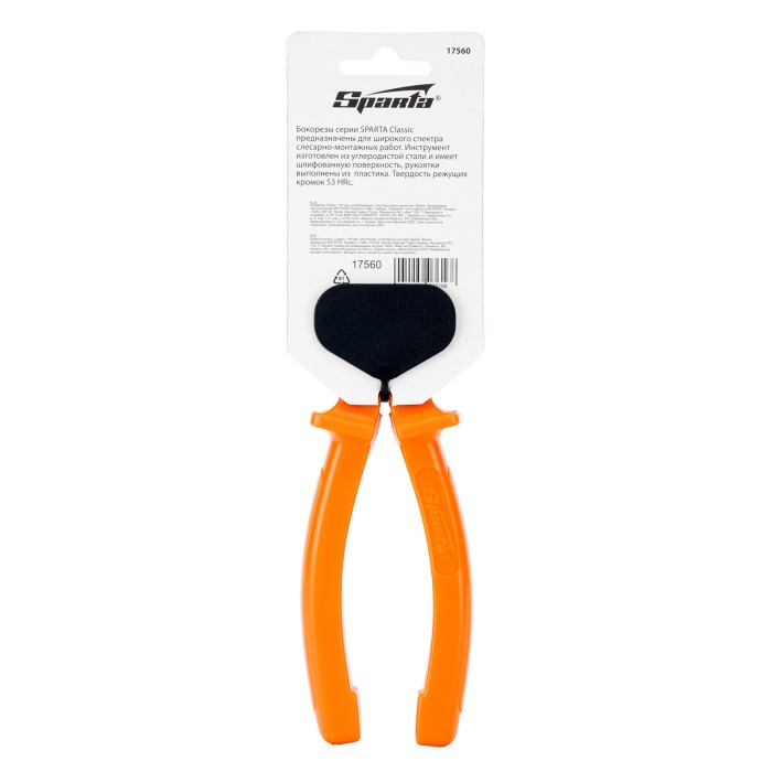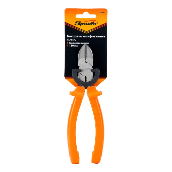 Шлифованные бокорезы Sparta Classic 17560 длиной 180 мм, с пластмассовыми рукоятками, для проведения слесарно-монтажных работ. Успешно справляются с перекусыванием проволоки, алюминиевых и медных проводов, а также снятием изоляции с кабельных изделий. Инструмент пригодится не только в домашнем хозяйстве, но и на строительной площадке.ПреимуществаПрочность и износостойкость — бокорезы выполнены из углеродистой стали марки У7, закаленной до твердости 45,5 HRC.Быстрая и аккуратная работа без риска поломки— режущие кромки дополнительно закалены до твердости 53 HRC.Высокое качество реза — рабочая поверхность отшлифована, что обеспечивает плотное прилегание губок.Комфортная и безопасная работа — пластиковые рукоятки удобно лежат в руке, специальный выступы предотвращают соскальзывание пальцев на рабочую часть.
