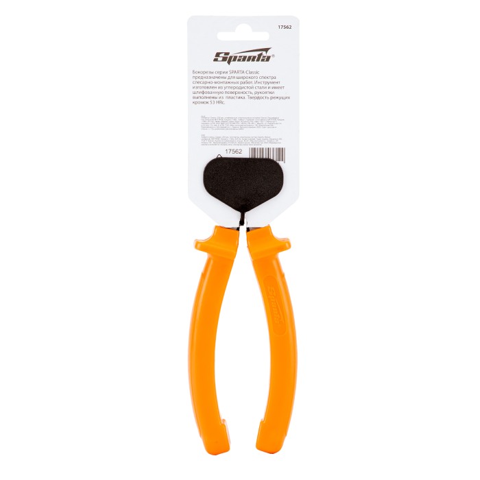 Шлифованные бокорезы Sparta Classic 17562 длиной 200 мм, с пластмассовыми рукоятками, для проведения слесарно-монтажных работ. Успешно справляются с перекусыванием проволоки, алюминиевых и медных проводов, а также снятием изоляции с кабельных изделий. Инструмент пригодится не только в домашнем хозяйстве, но и на строительной площадке.ПреимуществаПрочность и износостойкость — бокорезы выполнены из углеродистой стали марки У7, закаленной до твердости 45,5 HRC.Быстрая и аккуратная работа без риска поломки— режущие кромки дополнительно закалены до твердости 53 HRC.Высокое качество реза — рабочая поверхность отшлифована, что обеспечивает плотное прилегание губок.Комфортная и безопасная работа — пластиковые рукоятки удобно лежат в руке, специальный выступы предотвращают соскальзывание пальцев на рабочую часть.