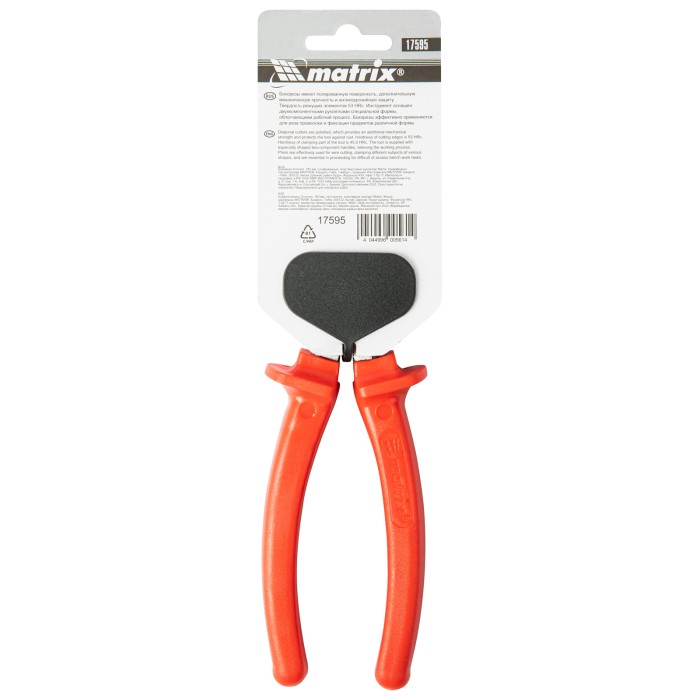 Шлифованные бокорезы Matrix Econom 17595 длиной 180 мм, с пластмассовыми рукоятками, предназначены для разрезания проводов, кабелей и проволоки диаметром до 2,5 мм. Инструмент пригодится при проведении монтажных, строительных и слесарных работ. Бокорезы используются как начинающими мастерами, так и профессионалами на строительных площадках и в домашних мастерских.ПреимуществаПрочность — бокорезы изготовлены из конструкционной углеродистой стали 45.Надежность — рукоятки из ударопрочной пластмассы устойчивы к механическим повреждениям.Безопасность — благодаря выступам-ограничителям на рукоятках рука не соскальзывает к рабочим частям.Высокое качество — губки прошли шлифовку для удаления неровностей, повреждений и трещин.