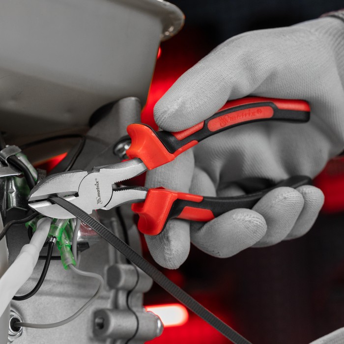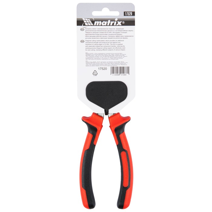 Никелированные бокорезы Matrix NICKEL 17520 длиной 160 мм, с двухкомпонентными рукоятками, используются для перекусывания проводов и проволоки. Пригодятся частным мастерам и профессионалам для проведения монтажных, строительных и слесарных работ.ПреимуществаЭффективная работа — режущие кромки прошли закалку высокочастотными токами до 53 HRC и легко справляются с твердыми материалами.Устойчивость к износу и коррозии — на рабочие поверхности нанесено защитное никелевое покрытие.Безопасность — на рукоятках имеются выступы, благодаря которым пальцы не соскальзывают к рабочим частям.Комфортная эксплуатация — двухкомпонентные рукоятки обеспечивают надежный захват, даже если мастер испачкает руки в масле.