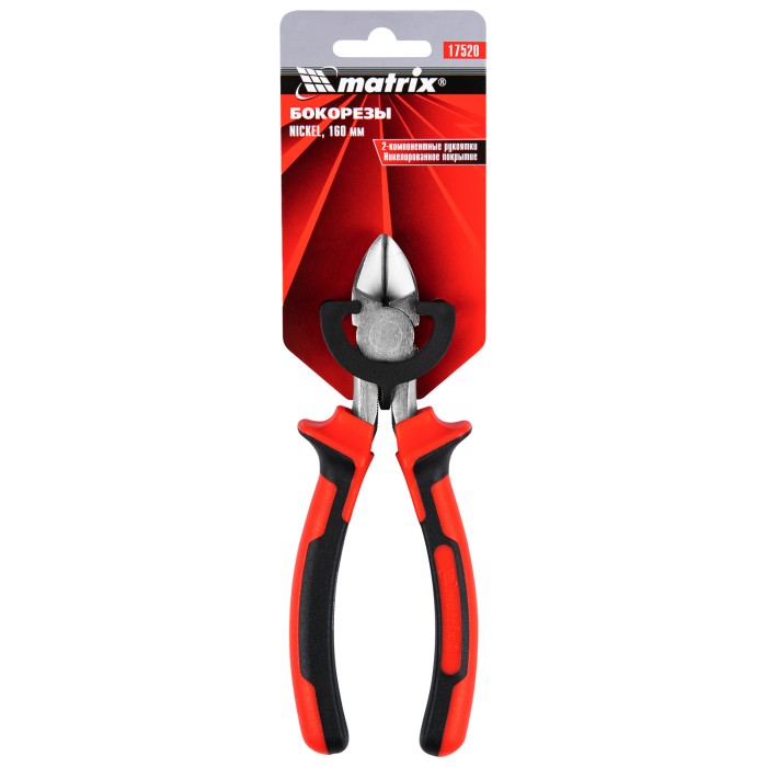 Никелированные бокорезы Matrix NICKEL 17520 длиной 160 мм, с двухкомпонентными рукоятками, используются для перекусывания проводов и проволоки. Пригодятся частным мастерам и профессионалам для проведения монтажных, строи...