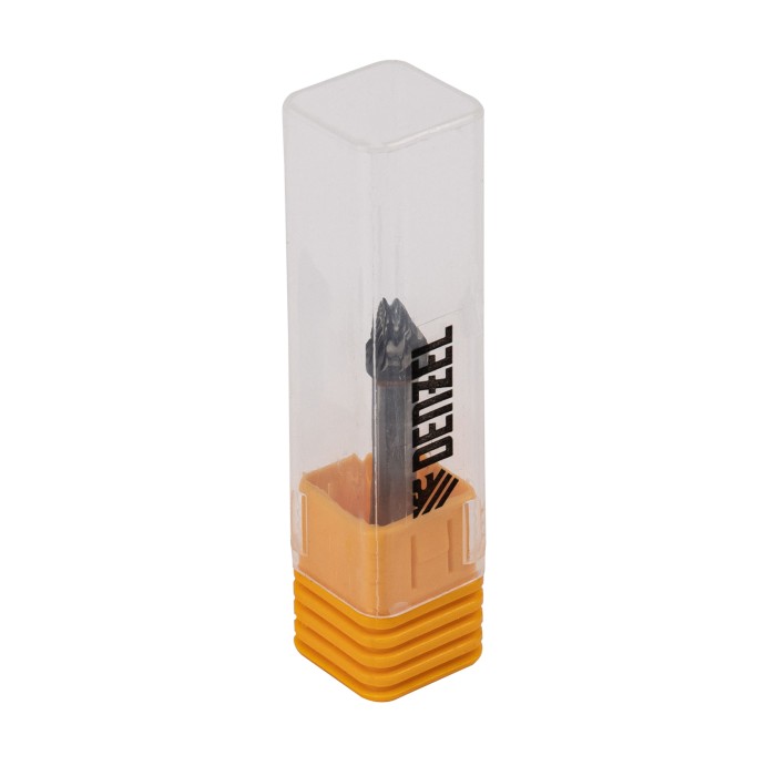 Твердосплавная борфреза по металлу Denzel 72053 с рабочей частью-зенкером с вершиной 60° (тип J), диаметром 8 мм, устанавливается на дрель или прямошлифовальную машину. Используется для обработки закаленной и нержавеющей стали, латуни, бронзы, меди, чугуна, титана, а также металлокерамики и искусственного камня. Оптимальна для снятия фасок и заусенцев, обработки кромок, угловых пазов, краев отверстий.ПреимуществаЭффективная работа с особо прочными материалами — рабочая часть изготовлена из сплава ВК8 твердостью 69-72 HRC.Высокая производительность — специальные перекрестные насечки-стружколомы обеспечивают эффективное удаление продуктов обработки.Универсальность — цилиндрический хвостовик диаметром 6 мм совместим с большинством патронов инструментов.Удобное хранение и транспортировка — борфреза поставляется в практичном пластиковом кейсе.