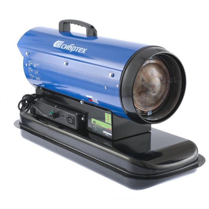 Дизельный теплогенератор Сибртех DH-15D 96465 мощностью 15 кВт поможет обогреть цех, хранилище, ангар и другие нежилые помещения. Также его можно применять на стройке для просушивания поверхностей, разморозки траншей и подогрева бетона. Теплогенератор способен обогреть помещение объемом до 250 куб. м благодаря теплопроизводительности 15 кВт и потоку воздуха 300 куб. м/ч. Увеличенный топливный бак объемом 18,5 л и низкий расход топлива 1,3 л/ч обеспечивают до 14 часов работы без необходимости дозаправки.ПреимуществаЭффективность — благодаря корпусу с двойными стенками, уменьшающему теплопотери, и системе прямого нагрева теплогенератор имеет высокий показатель КПД.Нетребовательность к топливу — теплогенератор может работать на арктическом, зимнем и летнем дизтопливе.Безопасная работа — подача топлива автоматически прекращается при перегреве, угасании огня и обесточивании.Защита пользователя — верхняя поверхность теплогенератора не нагревается, что снижает риск получения ожогов.Надежность — камера сгорания выдерживает высокие температуры до 1000 градусов C, а металлический корпус окрашен термостойкой краской.Возможность поддержания заданной температуры — к теплогенератору можно подключить внешний термостат.Продуманная конструкция — теплоотражающий экран снижает потери тепла и не допускает распространения открытого пламени.Удобный контроль — световой индикатор горит зеленым цветом при стабильной работе и красным при возникновении ошибки, а манометр позволяет отслеживать давление в системе.Устойчивость — благодаря широкой подставке теплогенератор не опрокидывается во время работы.Эргономичность — на корпусе имеется ручка для удобства транспортировки.Подтвержденное качество — гарантия на заводской брак действует 3 года.