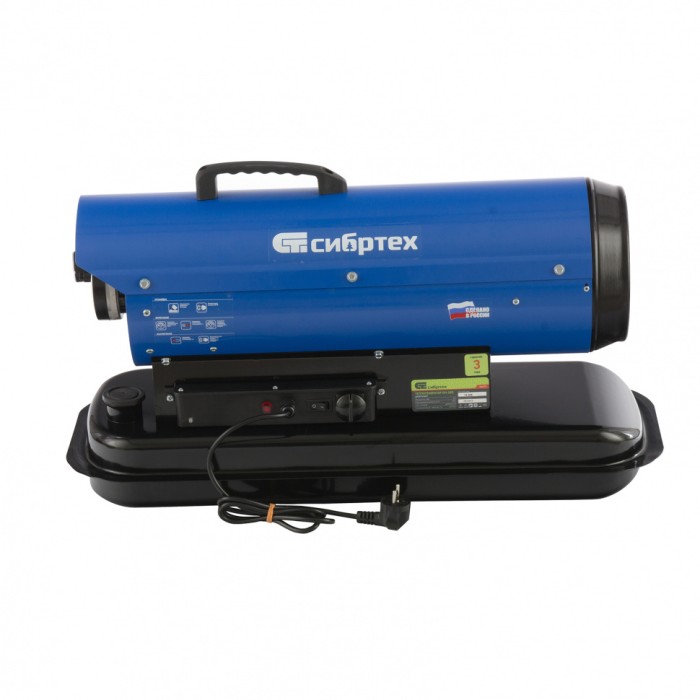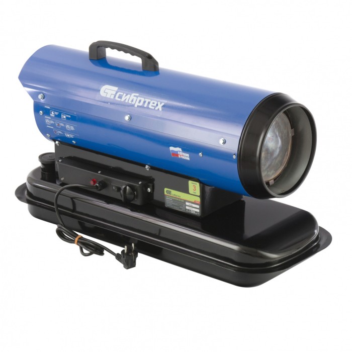 Дизельный теплогенератор Сибртех DH-20D 96470 мощностью 20 кВт предназначен для промышленного применения: обогрева складов, цехов и других производственных помещений. Также он станет незаменимым помощником на стройке в холодную погоду: просушит поверхности после отделки, разморозит грунт, подогреет строительные смеси. Теплопроизводительности 20 кВт и потока воздуха 350 куб. м/ч хватит для обогрева помещения с объемом воздуха до 325 куб. м. Заправлять теплогенератор можно любым видом дизельного топлива: арктическим, летним и зимним.ПреимуществаБезопасное использование — встроенная система защиты прекращает подачу топлива при перегреве, угасании огня и обесточивании.Экономичность — расход топлива составляет 1,87 л/ч, поэтому полного бака объемом 18,5 л хватит на полный рабочий день (более 9 часов).Надежность — камера сгорания выдерживает высокие температуры до 1000 градусов C.Поддержание заданной температуры — теплогенератор оснащен встроенным терморегулятором.Эффективная работа — система прямого нагрева позволяет добиться высоких показателей КПД, а двойные стенки корпуса снижают теплопотери.Долговечность — металлический корпус окрашен защитной термостойкой краской.Продуманная конструкция — теплоотражающий экран снижает потери тепла и не допускает распространения открытого пламени.Световая индикация работы — зеленая лампочка загорается при стабильном функционировании, а красная сигнализирует об ошибках в системе.Удобный контроль работы — с помощью манометра на корпусе можно отслеживать рабочее давление в системе.Надежная установка — широкая подставка обеспечивает устойчивость теплогенератора.Комфортная транспортировка — благодаря удобной ручке теплогенератор легко перемещать по рабочей площадке.Расширенная 3-летняя гарантия — высокое качество оборудования подтверждено производителем.