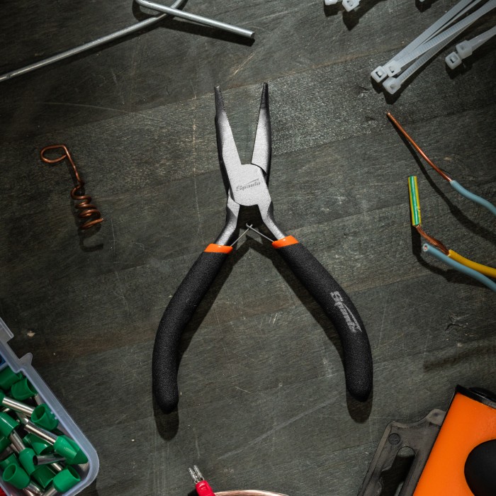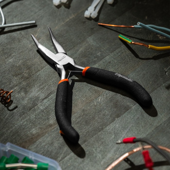 Длинногубцы изогнутые Mini, 130 мм, никелированные, авторазжим Sparta