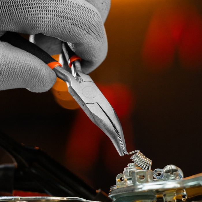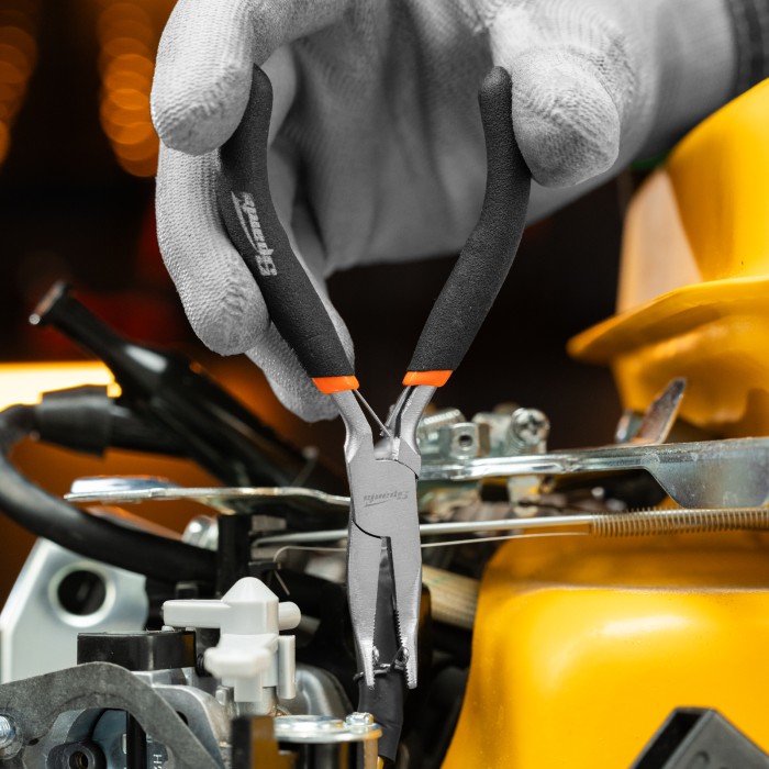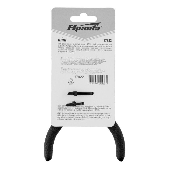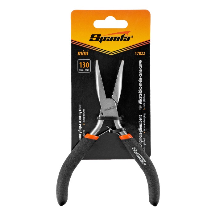 Изогнутые никелированные длинногубцы Sparta Mini 17822 длиной 130 мм, с авторазжимом, 130 мм, предназначены для проведения высокоточных работ, связанных с захватом и удержанием мелких деталей, проволоки, проводков. Изогнутые губки облегчают работу в труднодоступных местах. Длинногубцы будут полезны строителю, ремонтнику, радиолюбителю, а также пригодятся в быту.ПреимуществаДолговечность — длинногубцы из углеродистой стали С45 с никелированным покрытием не сломаются и не заржавеют.Авторазжим — рукоятки мгновенно возвращаются в исходное состояние, что упрощает работу и экономит время мастера.Комфортная работа — обливные рукоятки удобно лежат в руке.