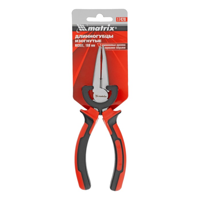 Длинногубцы изогнутые Nickel, 160 мм, никелированные, двухкомпонентные рукоятки Matrix