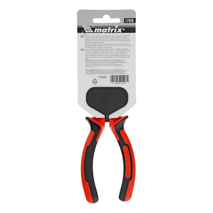 Изогнутые никелированные длинногубцы Matrix NICKEL 17420 длиной 160 мм, с двухкомпонентными рукоятками, помогают удерживать небольшие детали и перекусывать проволоку. Изогнутая форма губок позволяет дотягиваться до деталей в труднодоступных местах. Длинногубцы используются для проведения ремонтных и монтажных работ.ПреимуществаПовышенная прочность — инструмент изготовлен из высококачественной стали, рабочие кромки закалены до твердости 53 HRC.Износостойкость и защита от коррозии — на рабочие части нанесено никелевое покрытие.Комфортная работа — двухкомпонентные рукоятки удобно лежат в руке и не выскальзывают из ладони.