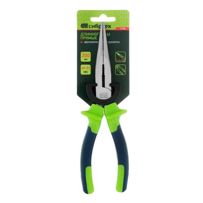 Длинногубцы прямые, 200 мм, двухкомпонентные рукоятки Сибртех
