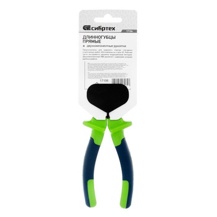 Прямые длинногубцы Сибртех 17106 длиной 200 мм, с двухкомпонентными рукоятками, применяются для удерживания мелких деталей и проводов, перекусывания проволоки. Узкие удлиненные губки удобны для манипуляций в малодоступных местах. Длинногубцы используются в слесарном деле, для проведения ремонтных работ, а также позволяют решать бытовые задачи.ПреимуществаПрочность и долговечность — рабочие части выполнены из стали 45, закаленной индукционными токами.Дополнительные возможности — кусачки позволяют быстро перекусывать проволоку и проводки небольшого сечения.Комфортная и безопасная эксплуатация — пластиковые двухкомпонентные рукоятки со специальными упорами надежно ложатся в руку.