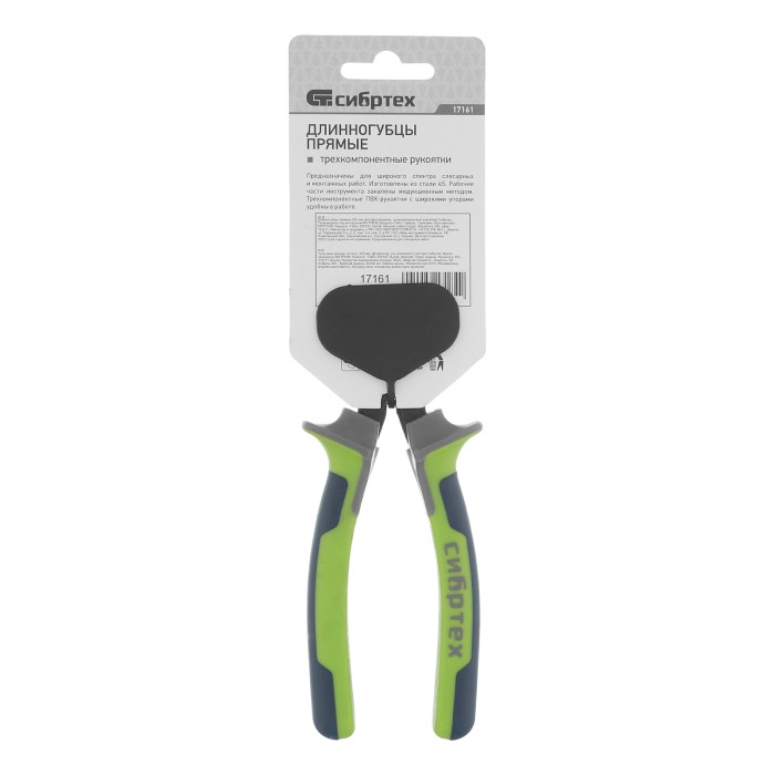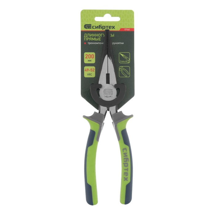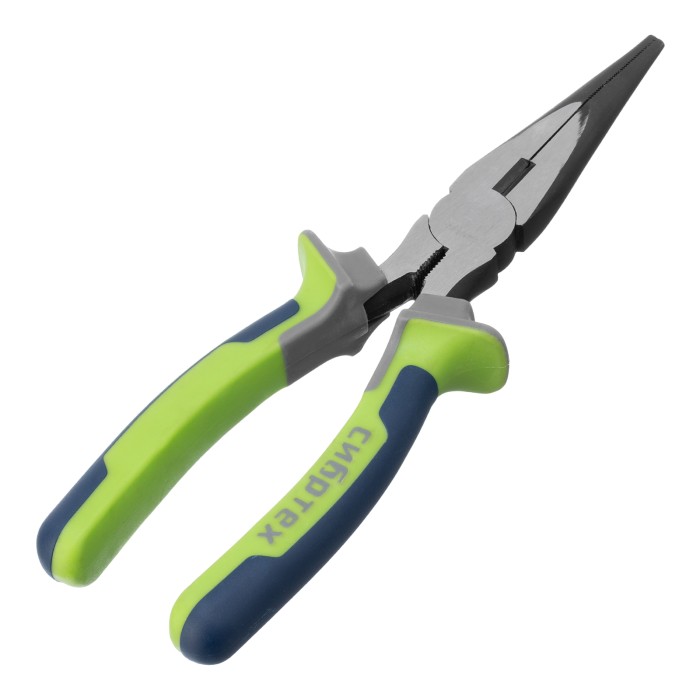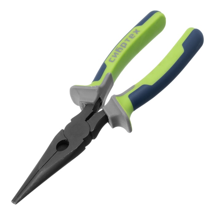 Длинногубцы прямые 200 мм, фосфатирование, трехкомпонентные рукоятки Сибртех