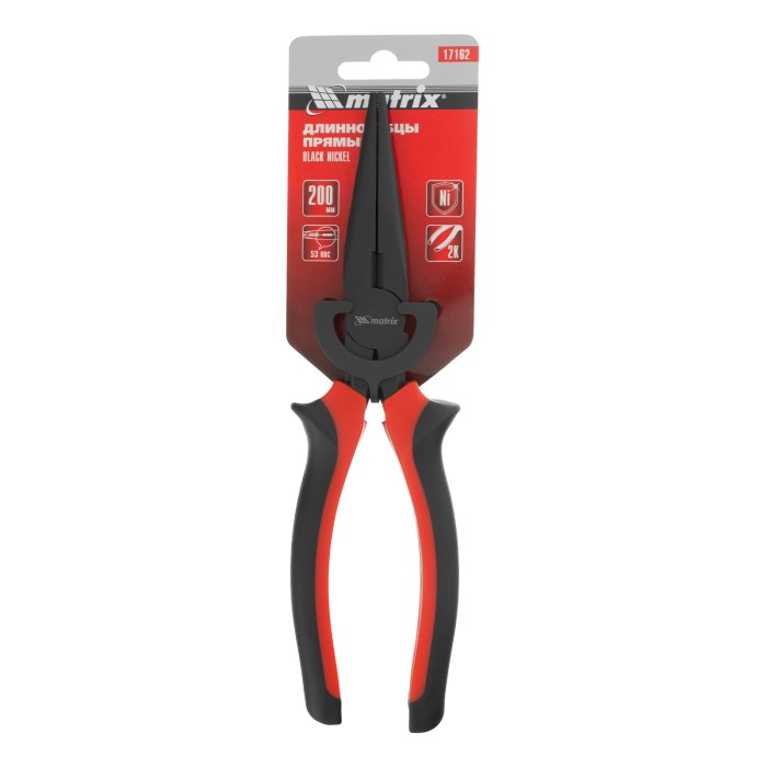 Длинногубцы прямые Black Nickel, 200 мм, двухкомпонентные рукоятки Matrix