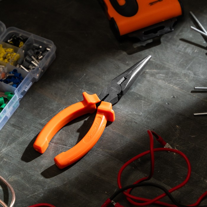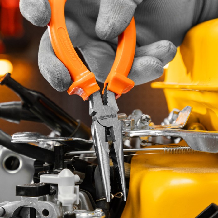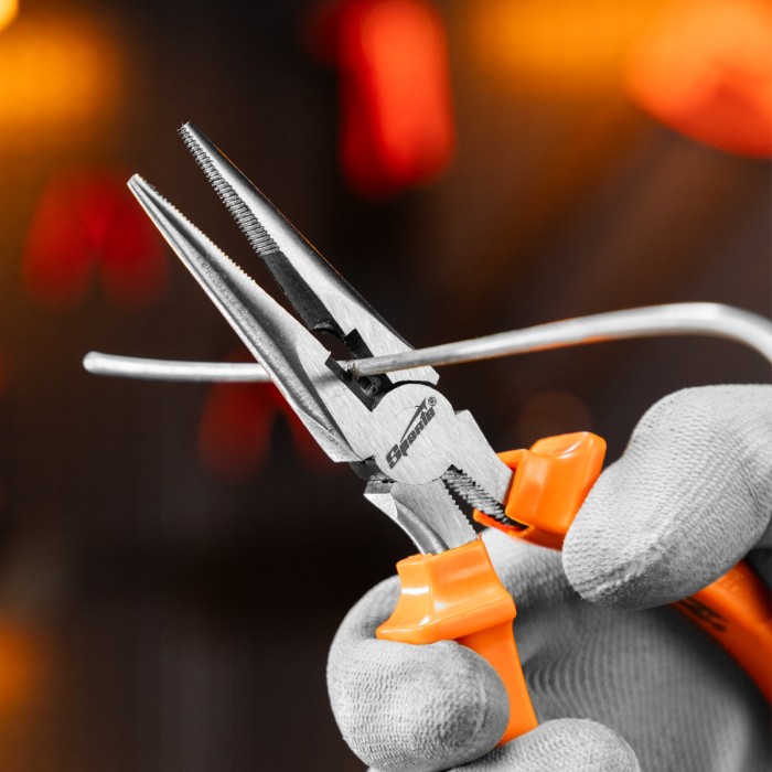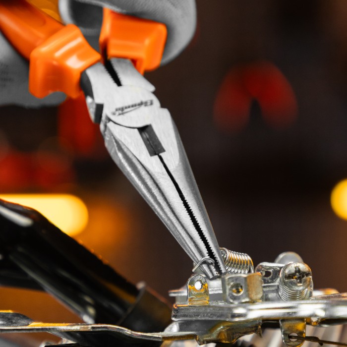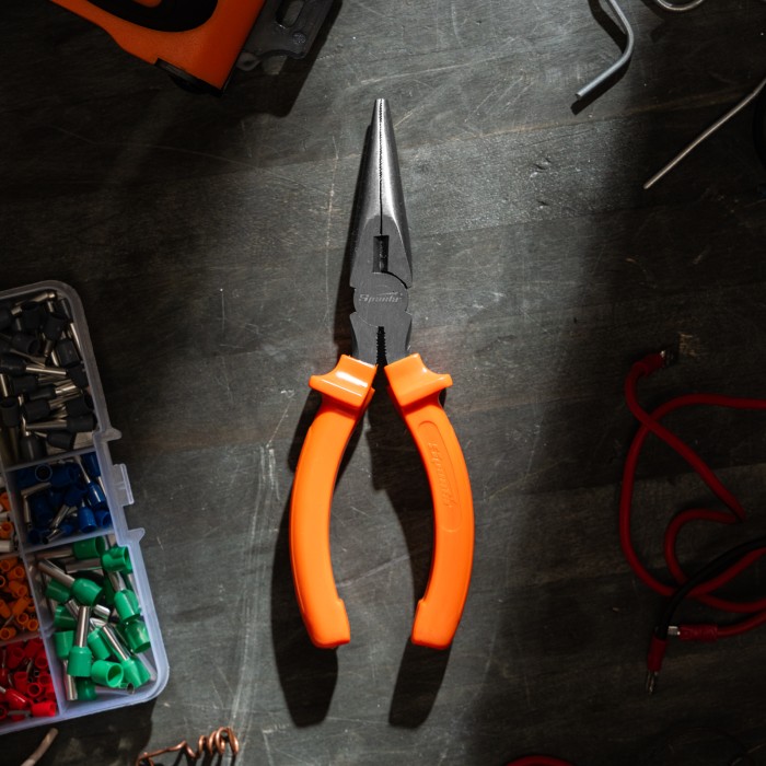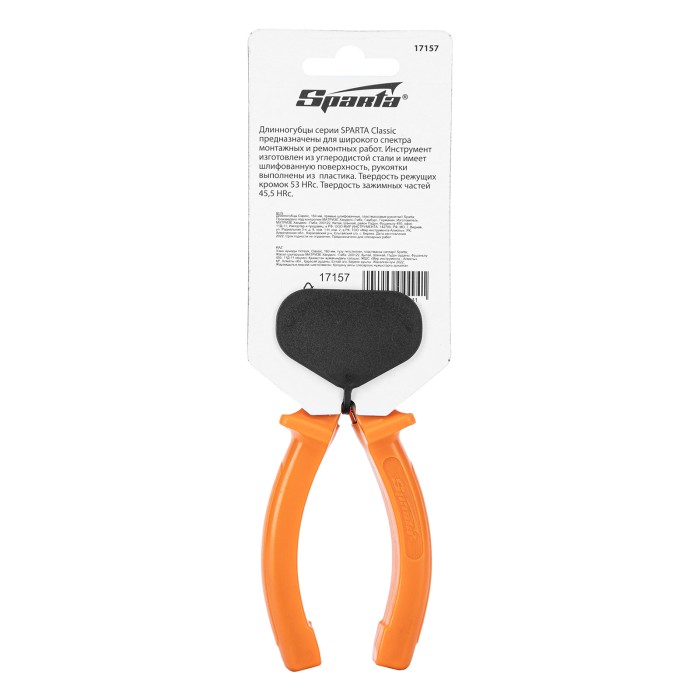 Прямые шлифованные длинногубцы Sparta Classic 17157 длиной 160 мм, с пластмассовыми рукоятками, облегчают манипуляции с крепежом, мелкими деталями, проводами и проволокой. Удлиненные губки обеспечивают доступ в узкие места. Инструмент будет полезен во время строительства или ремонта, пригодится для монтажа и демонтажа оборудования, а также при починке бытовой техники и электроники.ПреимуществаИзносостойкость — длинногубцы изготовлены из инструментальной углеродистой стали C45.Эффективное выполнение поставленных задач — губки имеют твердость около 45,5 HRC, режущими кромками твердостью 53 HRC можно перекусывать проволоку.Эргономичность — пластмассовые рукоятки с широкими упорами удобно лежат в ладони.