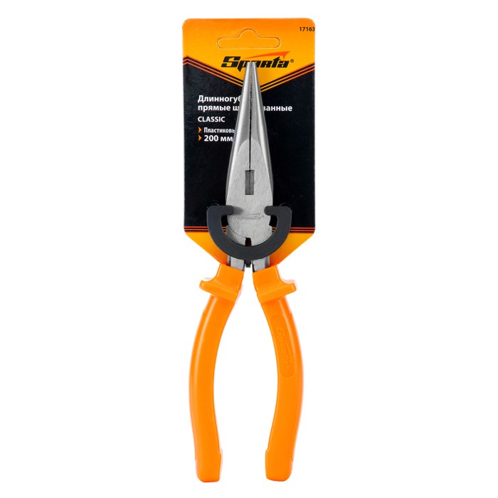 Длинногубцы прямые Classic, 200 мм, шлифованные, пластмассовые рукоятки Sparta