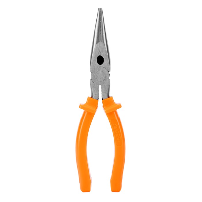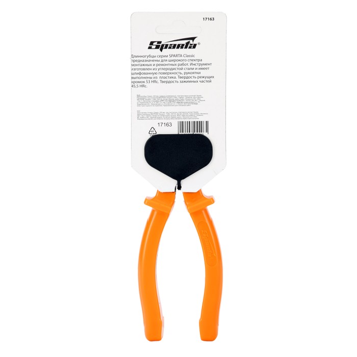 Прямые шлифованные длинногубцы Sparta Classic 17163 длиной 200 мм, с пластмассовыми рукоятками, облегчают манипуляции с крепежом, мелкими деталями, проводами и проволокой. Удлиненные губки обеспечивают доступ в узкие места. Инструмент будет полезен во время строительства или ремонта, пригодится для монтажа и демонтажа оборудования, а также при починке бытовой техники и электроники.ПреимуществаИзносостойкость — длинногубцы изготовлены из инструментальной углеродистой стали C45.Эффективное выполнение поставленных задач — губки имеют твердость около 45,5 HRC, режущими кромками твердостью 53 HRC можно перекусывать проволоку.Эргономичность — пластмассовые рукоятки с широкими упорами удобно лежат в ладони.