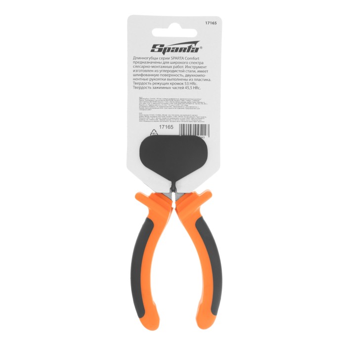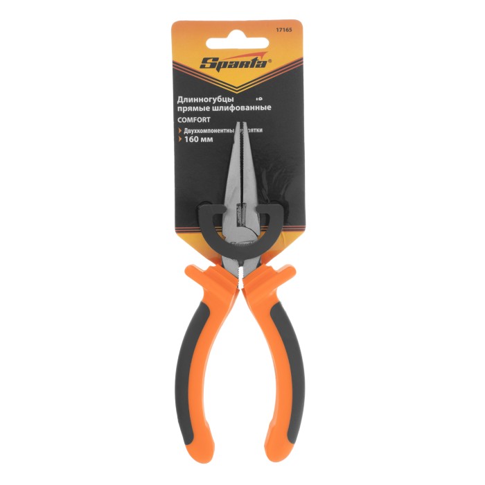 Длинногубцы прямые Comfort, 160 мм ,шлифованные, двухкомпонентные рукоятки Sparta
