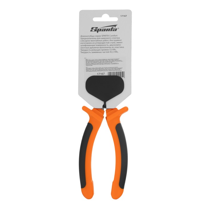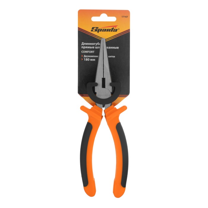 Длинногубцы прямые Comfort, 180 мм, шлифованные, двухкомпонентные рукоятки Sparta