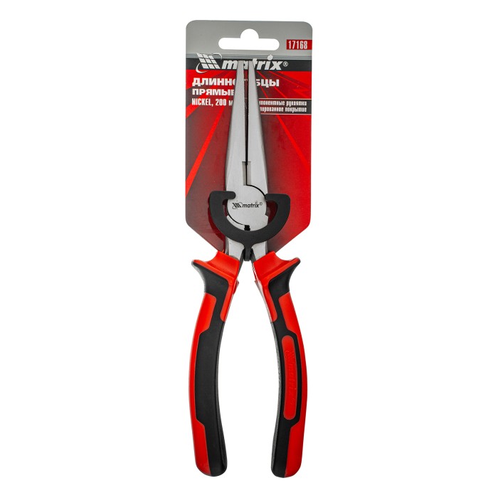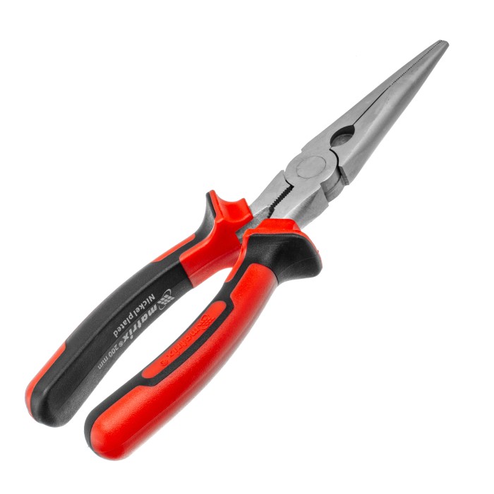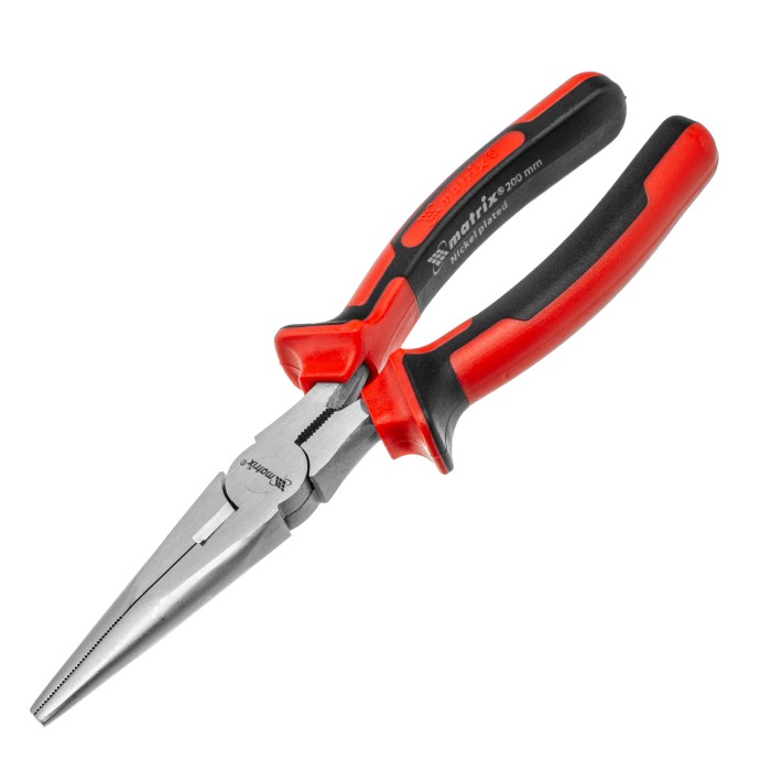 Длинногубцы прямые Nickel, 200 мм, никелированные, двухкомпонентные рукоятки Matrix