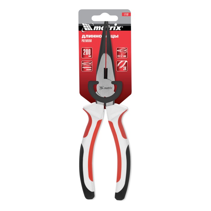 Длинногубцы прямые Premium, 200 мм, трехкомпонентные рукоятки Matrix