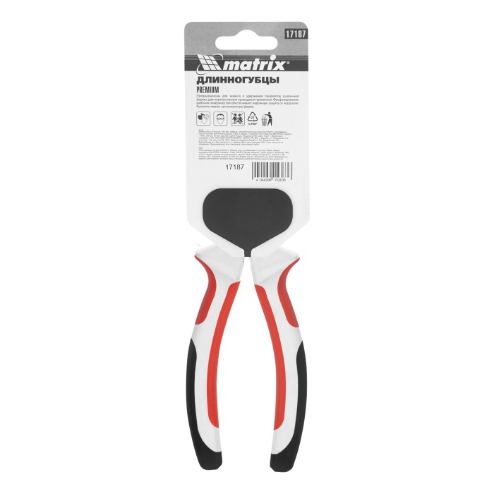 Прямые длинногубцы Matrix Premium 17187 длиной 200 мм, с трехкомпонентными рукоятками, позволяют захватывать и удерживать мелкие детали разной формы, загибать и перекусывать проволоку, прутки, провода. Облегчают работу в труднодоступных местах. Длинногубцы пригодятся слесарям, монтажникам и строителям.ПреимуществаВысокий ресурс — рабочие части прошли индукционную закалку до твердости 49-52 HRC.Долговечность — металлическая фосфатированная поверхность частично отшлифована, поэтому инструмент устойчив к коррозии и износу.Безопасность — широкие упоры на рукоятках предотвращают соскальзывание пальцев к рабочим частям и снижают риск травмирования.Комфортная работа — эргономичные трехкомпонентные рукоятки обеспечивают надежный хват и снижают нагрузку на руку мастера.