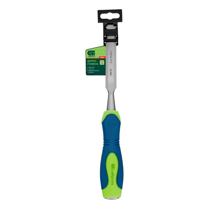 Долото-стамеска Сибртех 24481 с двухкомпонентной рукояткой — ручной инструмент с шириной режущей части 16 мм для столярных и плотницких работ с массивом натурального дерева. Под ударом киянки или небольшого молотка долото-стамеска легко врезается в древесину любых пород, что позволяет получать аккуратные прямоугольные пазы, снимать фаски, зачищать гнезда и т.д.ПреимуществаПрочность — полотно стамески изготовлено из высококачественной конструкционной углеродистой стали 55.Долговечность — полотно на 2/3 длины рабочей части закалено до твердости 50-55 HRC, поэтому инструмент долго сохраняет остроту.Высокая эффективность — режущая часть остро заточена на заводе под углом 20-35 градусов, что обеспечивает качественную работу и аккуратный результат.Защита от разрушения — металлический затыльник предотвращает деформацию рукоятки под воздействием киянки или молотка.Эргономичность — обрезиненная двухкомпонентная рукоятка не выскальзывает из руки и обеспечивает комфортную работу.