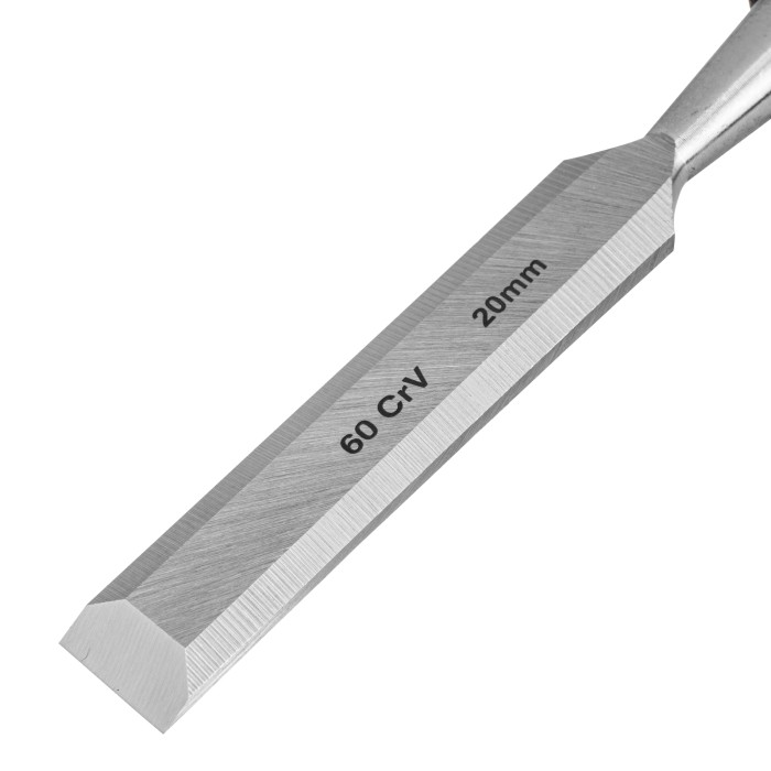 Долото-стамеска Matrix «Тигровый глаз» 24515 с полотном шириной 20 мм и двухкомпонентной обрезиненной рукояткой используется в столярном и плотницком деле, в производстве мебели. Позволяет вырезать углубления, формировать пазы, зачищать шипы и гнезда, снимать фаски. Инструмент выдерживает удары киянкой или молотком, т. к. металлический затыльник защищает его от деформации. Долото относится к профессиональному ручному инструменту, но может применяться и в домашних условиях.ПреимуществаПовышенная прочность — полотно выполнено из легированной хромованадиевой стали.Длительное сохранение режущих свойств — долото-стамеска обладает твердостью 65 HRC (0,7 длины рабочей части полотна), острое, как бритва, лезвие обработано на заводе под углом 20-35°, повторная заточка потребуется минимум через 6 месяцев.Продуманная конструкция — металлический стержень, проходящий сквозь рукоятку, повышает прочность и долговечность инструмента.Комфортная эксплуатация — двухкомпонентная рукоятка с резиновыми вставками и упорами под пальцы не скользит в руке и снижает усталость во время работы.
