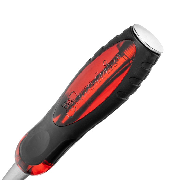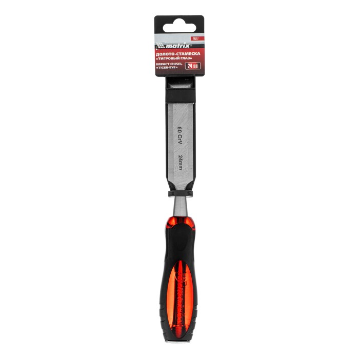 Долото-стамеска Matrix «Тигровый глаз» 24517 с полотном шириной 24 мм и двухкомпонентной обрезиненной рукояткой используется в столярном и плотницком деле, в производстве мебели. Позволяет вырезать углубления, формировать пазы, зачищать шипы и гнезда, снимать фаски. Инструмент выдерживает удары киянкой или молотком, т. к. металлический затыльник защищает его от деформации. Долото относится к профессиональному ручному инструменту, но может применяться и в домашних условиях.ПреимуществаПовышенная прочность — полотно выполнено из легированной хромованадиевой стали.Длительное сохранение режущих свойств — долото-стамеска обладает твердостью 65 HRC (0,7 длины рабочей части полотна), острое, как бритва, лезвие обработано на заводе под углом 20-35°, повторная заточка потребуется минимум через 6 месяцев.Продуманная конструкция — металлический стержень, проходящий сквозь рукоятку, повышает прочность и долговечность инструмента.Комфортная эксплуатация — двухкомпонентная рукоятка с резиновыми вставками и упорами под пальцы не скользит в руке и снижает усталость во время работы.