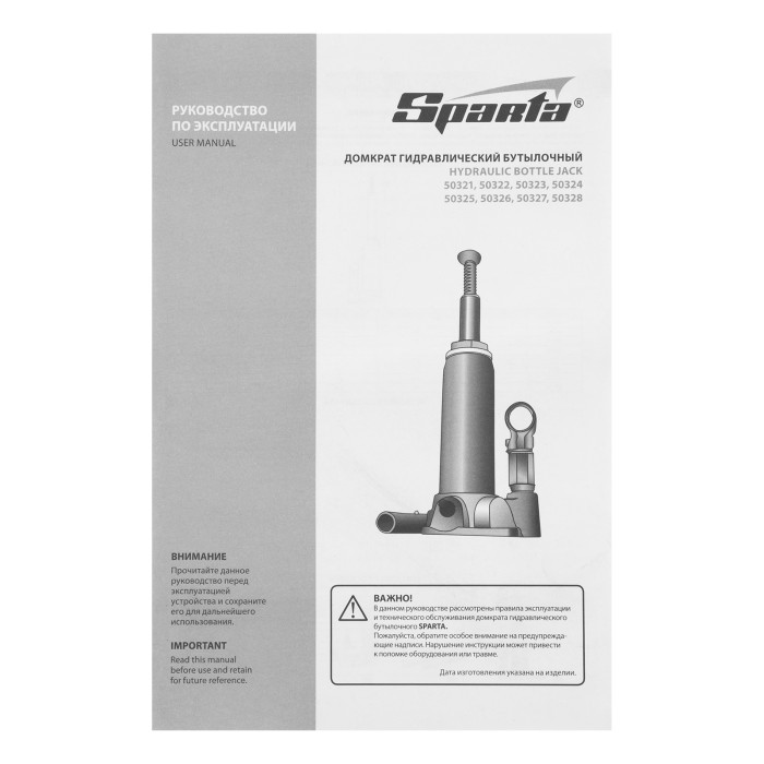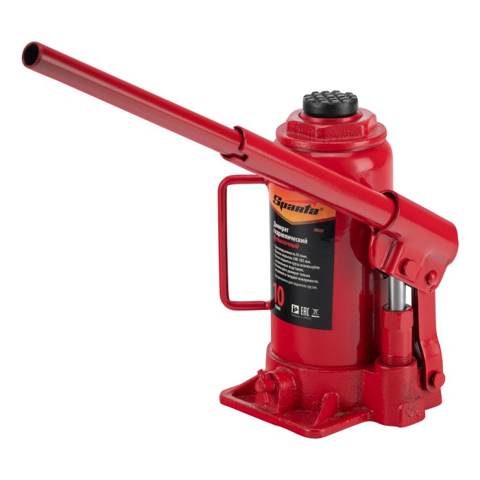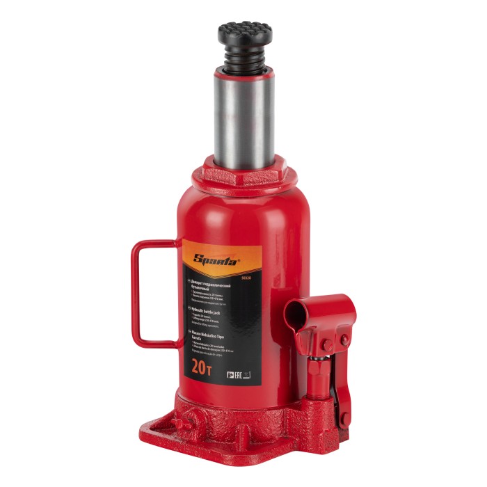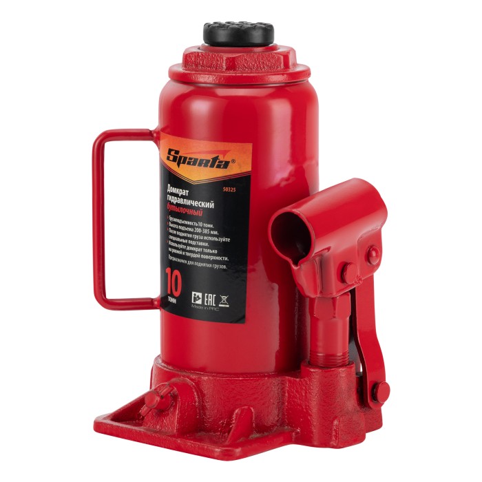 Домкрат гидравлический бутылочный, 10 т, h подъема 200-385 мм Sparta
