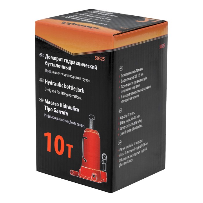 Гидравлический бутылочный домкрат Sparta 50325 рассчитан на подъем грузов весом до 10 т на высоту от 200 до 385 мм. Он пригодится как автолюбителям в гараже, так и профессиональным мастерам в автосервисах. Домкрат обеспе...