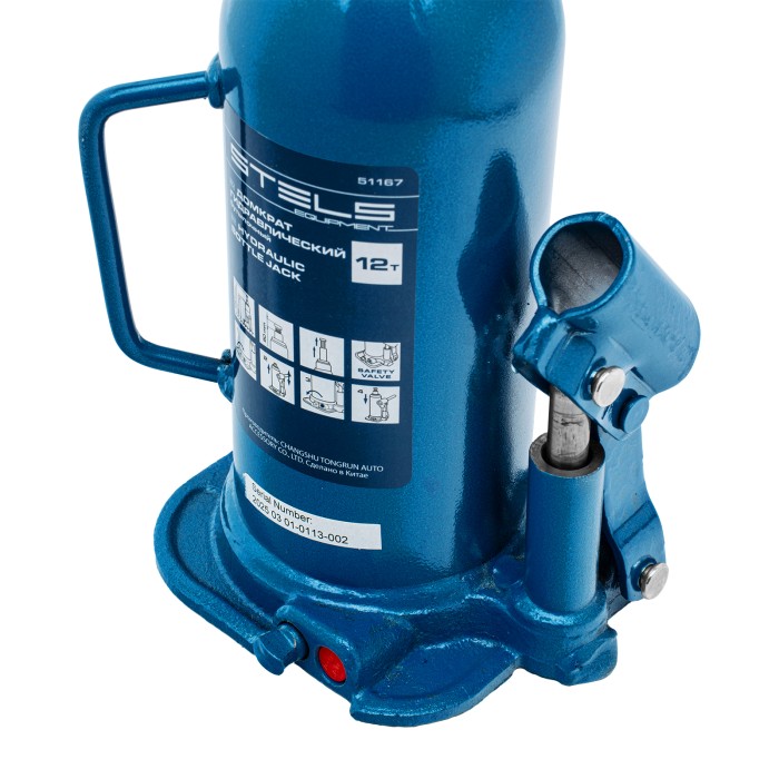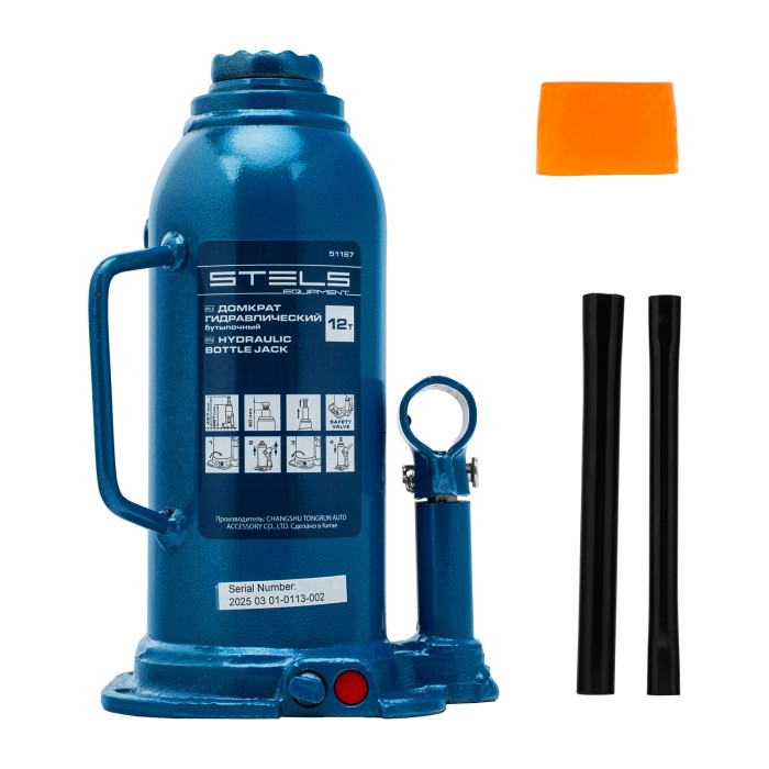 Гидравлический бутылочный домкрат Stels 51167 применяется для быстрого поднятия грузов весом до 12 т на высоту 227-457 мм. Оптимален для автомобилей с большим клиренсом. Домкрат будет полезен автолюбителям и профессионалам для ремонта транспортного средства.ПреимуществаБезопасная эксплуатация — благодаря предохранительному клапану домкрат не поднимает грузы тяжелее 12 т.Прочность и долговечность — корпус выполнен из коррозионностойкой стали.Надежная конструкция — домкрат не имеет резьбовых соединений, т.к. корпус приварен к станине.