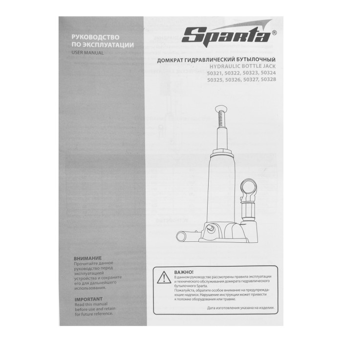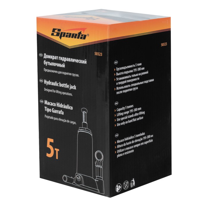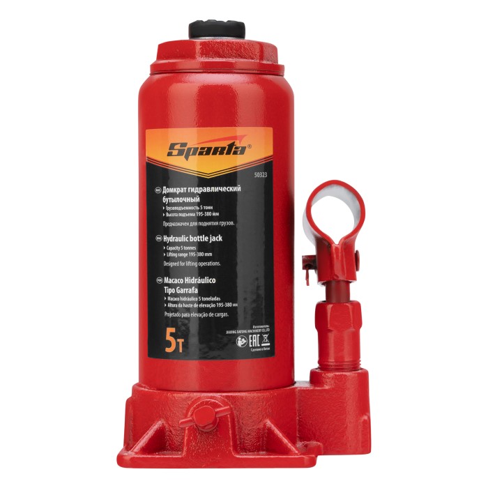 Домкрат гидравлический бутылочный, 5 т, h подъема 195-380 мм Sparta