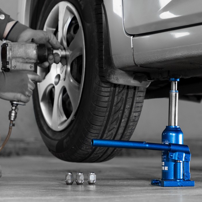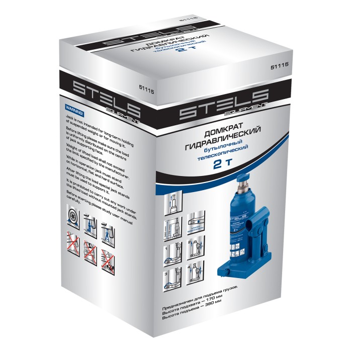 Гидравлический бутылочный телескопический домкрат Stels 51115 используется для поднятия грузов весом до 2 т с на высоту 170-380 мм. Не требует больших усилий и оптимален для автомобилей с большим клиренсом. Домкрат можно использовать в гараже для самостоятельного ремонта машины или в автосервисе для решения профессиональных задач.ПреимуществаЗащита от поломки — клапан безопасности не позволяет поднимать грузы массой свыше 2000 кг.Надежная конструкция — основание и корпус выполнены из стали и сварены между собой.Малый вес 3,4 кг — домкрат легко перемещать и перевозить в багажнике машины.