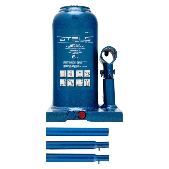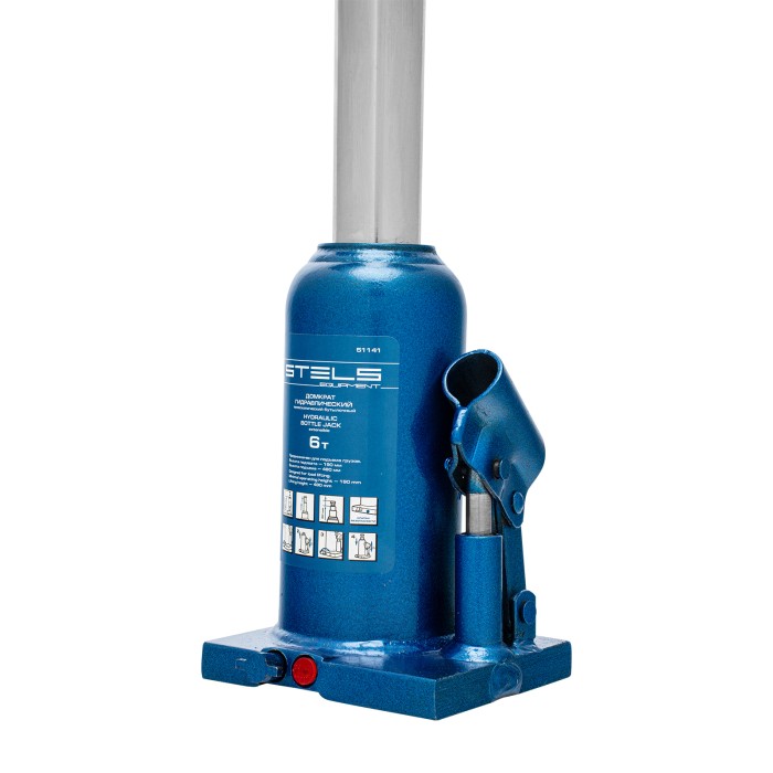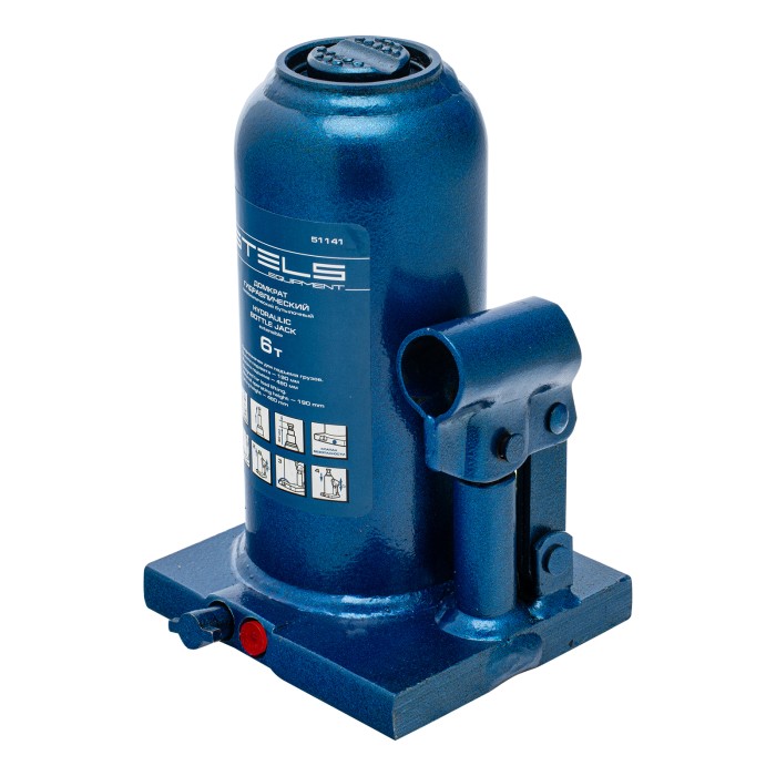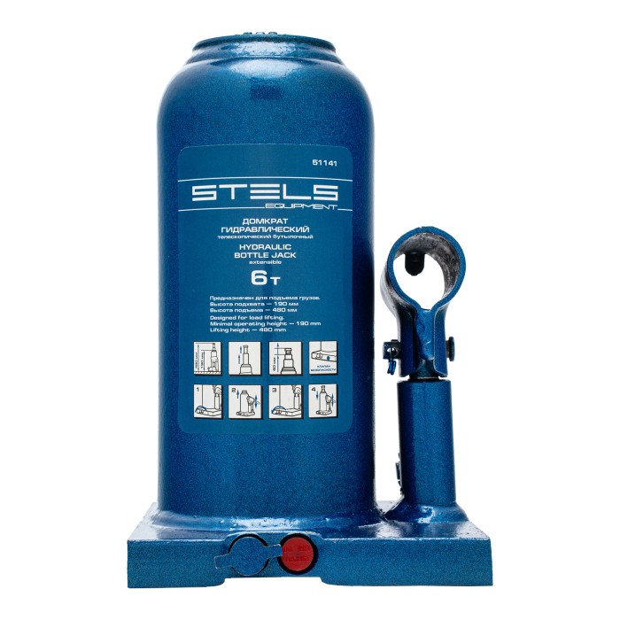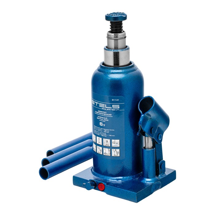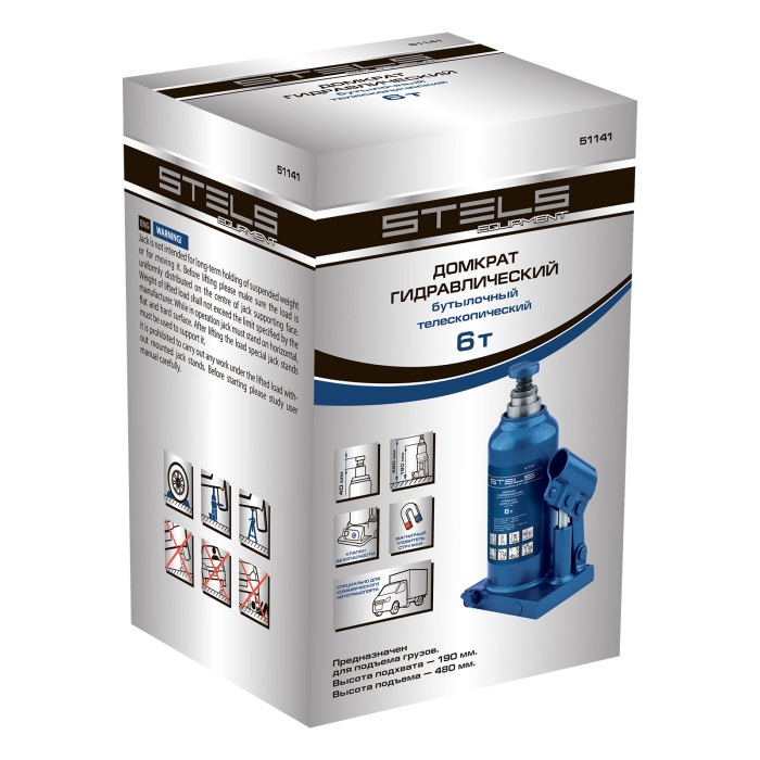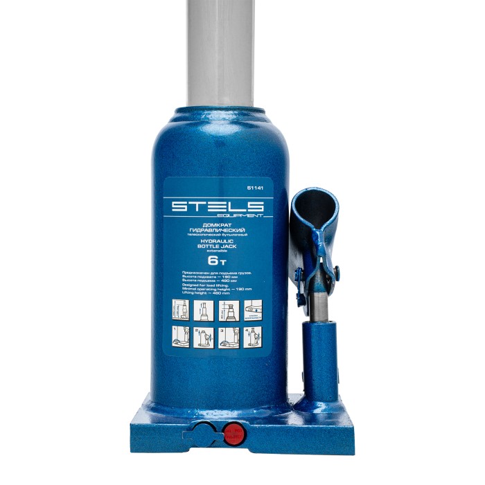 Гидравлический бутылочный телескопический домкрат Stels 51141 используется для поднятия грузов весом до 6 т с на высоту 190-480 мм. Не требует больших усилий и оптимален для автомобилей с большим клиренсом. Домкрат можно использовать в гараже для самостоятельного ремонта машины или в автосервисе для решения профессиональных задач.ПреимуществаЗащита от поломки — клапан безопасности не позволяет поднимать грузы массой свыше 6000 кг.Надежная конструкция — основание и корпус выполнены из стали и сварены между собой.Малый вес 5,5 кг — домкрат легко перемещать и перевозить в багажнике машины.
