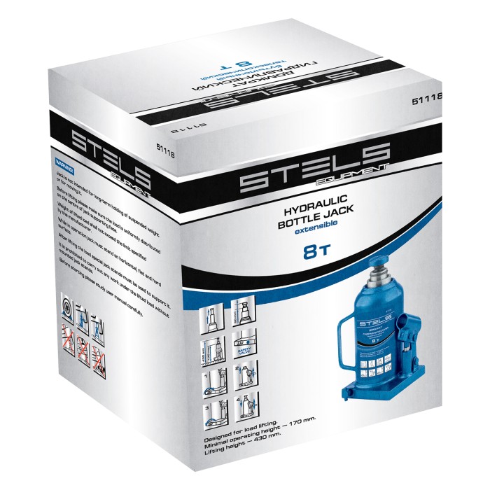 Гидравлический бутылочный телескопический домкрат Stels 51118 используется для поднятия грузов весом до 8 т с на высоту 170-430 мм. Не требует больших усилий и оптимален для автомобилей с большим клиренсом. Домкрат можно...