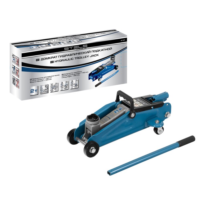 Домкрат гидравлический подкатной, 2 т, h подъема 140-340 мм Stels