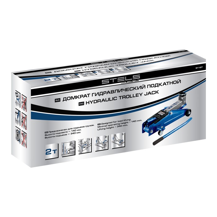 Гидравлический подкатной домкрат Stels 51127 с высотой подхвата 140 предназначен для подъема грузов массой до 2 т на высоту до 340 мм. Применяется для обслуживания автотранспорта, подходит для автомобилей со стандартным клиренсом. Домкрат компактен и может использоваться автовладельцами самостоятельно.ПреимуществаНадежность — благодаря усиленной конструкции устройство выдерживает значительные нагрузки без риска поломки.Безопасность — клапан сброса избыточного давления защищает от перегрузки.Маневренность — благодаря поворотным колесам домкрат можно быстро подвести под груз.Небольшие габариты 450 х 210 х 150 — домкрат можно разместить в багажнике автомобиля.